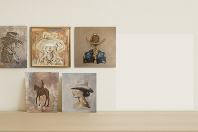 Art has always been my anchor—a way to slow time and exist fully in the present moment. Since high school, I’ve explored a range of mediums, but I always return to the fluidity of acrylic and the richness of oil. Lately, my work has expanded beyond mountain-inspired textures into a new Western Series that reflects my Texas roots and love for open spaces. These pieces—featuring cowgirls, horses, and the quiet strength of the West—allow me to explore depth, texture, and emotion in a new way. Painting remains an act of meditation for me: a place to quiet my mind, move with intention, and find balance in the rhythm of creation.